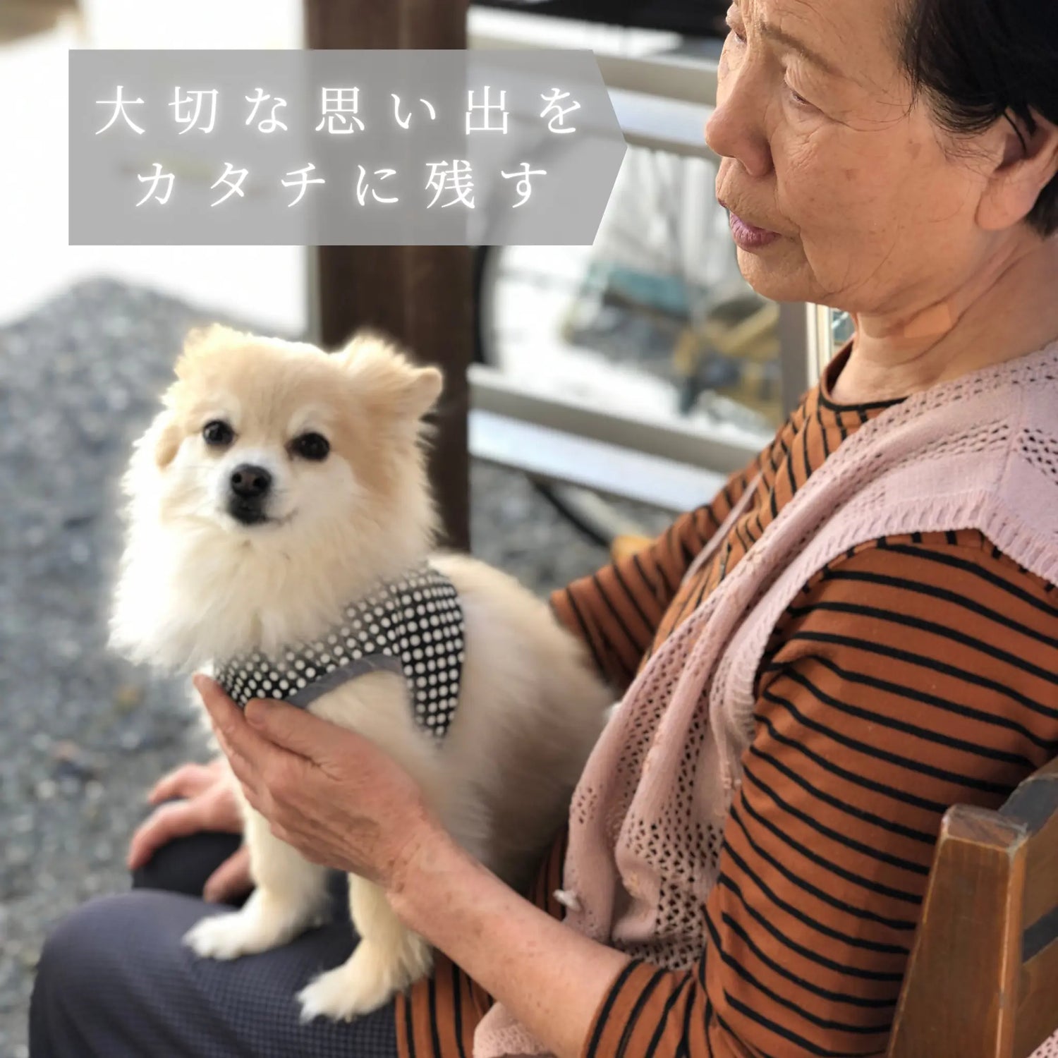 元気なうちにみんなで写真を撮りたいという思いから、家族みんなで旅行にいき、ワンちゃんも一緒に参加。一生の思い出になりました。